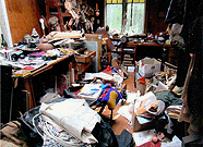 I love it. People ask how I can bear to work in such a mess, but to me the mess is a necessary part of the work. Without piles of treasure/junk to choose from, how can I find just exactly the right thing that I need for a particular assemblage?