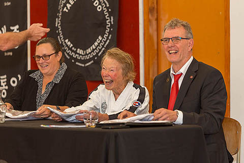 My 'team' - Brett Greiner my self-defence partner (aka 'the fall guy'). Taranaki Taekwon-Do club instructor Master Neill Livingstone, and Pauline and Brent Flynn - friends and coaches.