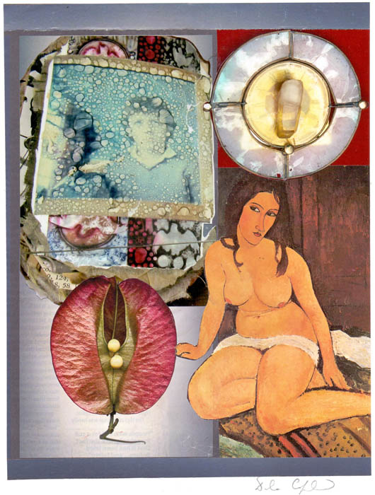 Using a photo of one of my assemblages and a Polaroid I took of two students. With magazine cut-ups and a Modigliani print.