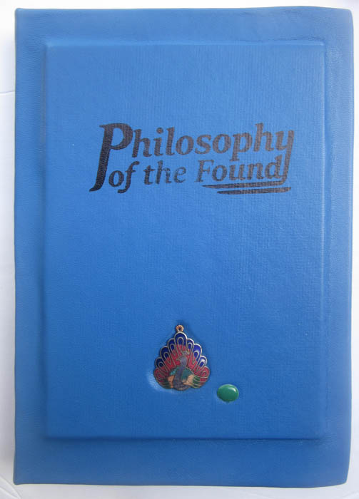 handbound with blue Italian leather, with enamel cloisonne phoenix, and green gemstone 'egg'