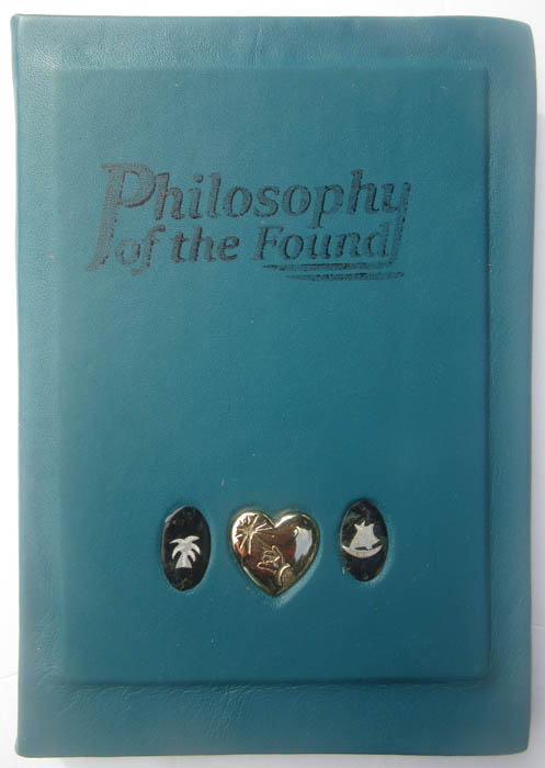 handbound with blue/green Italian leather, with golden heart and two island scenes - silver on shell.
