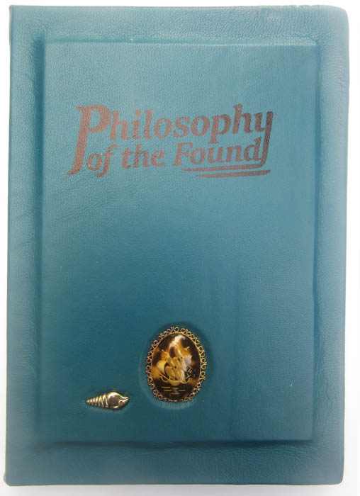 Handbound with dark blue Italian leather, with 3D carved sailing ship, and golden shell.