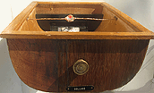 In a skip/dumpster outside the ancient church I found the curved wooden drawer, still labelled 'Collars'.