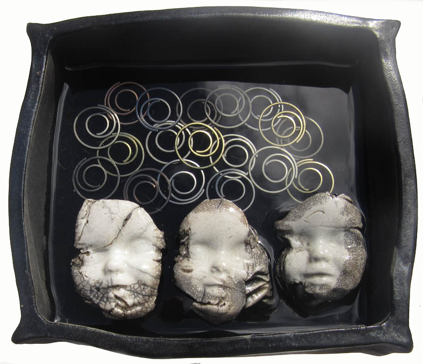 Ceramic faces which split in the kiln.
