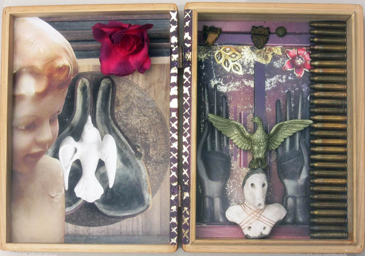 I was asked to be a guest exhibitor in an exhibition of assemblage work by prisoners. Each of us given an identical box to work with.
