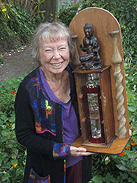 And the back cut from a sheet of lovely wood, with, of course, a Buddhist sacred figure