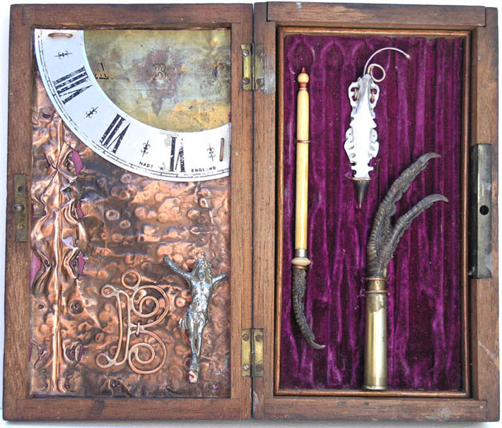 Copper, brass, turkey claws, crucifix, bullet case, bone