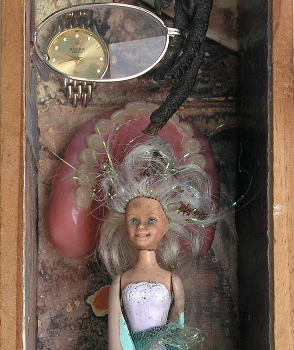 A friend found the doll on a beach, with seaweed twined amongst the glittery hair.