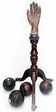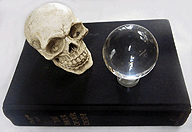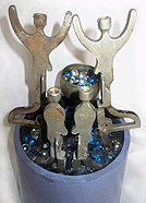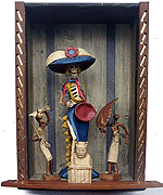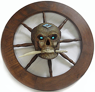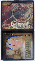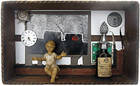 (His shirt says 'SOMETHING WICKED THIS WAY COMES' - from Shakespeare's Globe in London.)In the middle, part of an assemblage I made 25 years ago, titled: