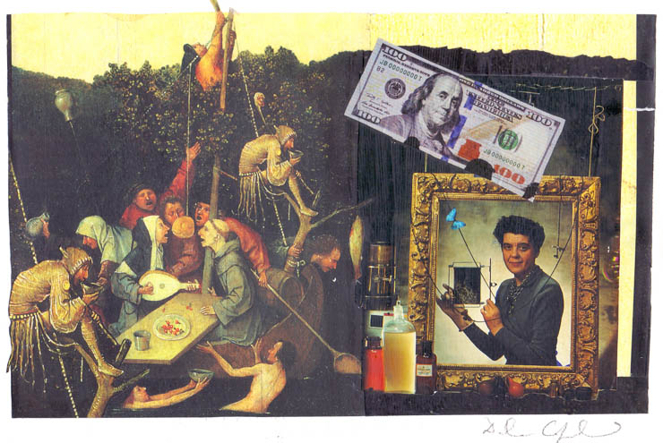 Using the dustcover from a discarded book, a pic from the book Auto Focus, and a repro of a US$100 note.