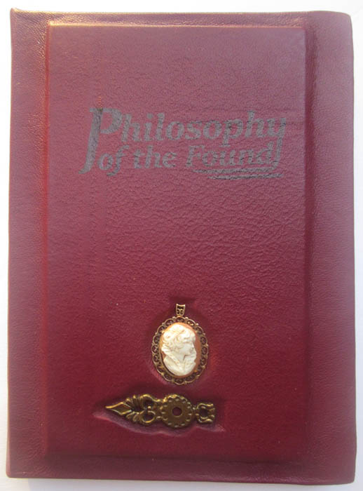 handbound with dark red/brown Italian leather, inset with a cameo pendant and a cast bronze drawer fitting.