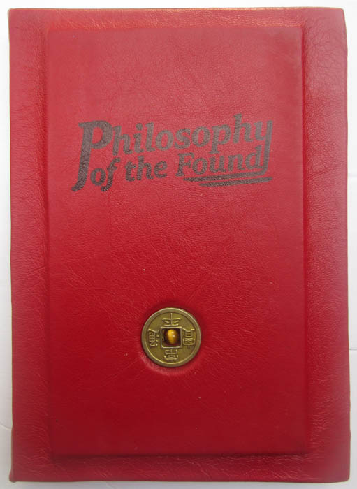 handbound with red Italian leather, inset with small polished tiger-eye gemstone inside Korean coin.