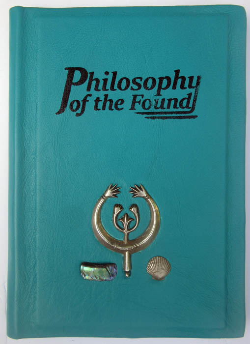 handbound with blue/green Italian leather, inset with a silver squash blossom, cast silver shell, piece of polished paua