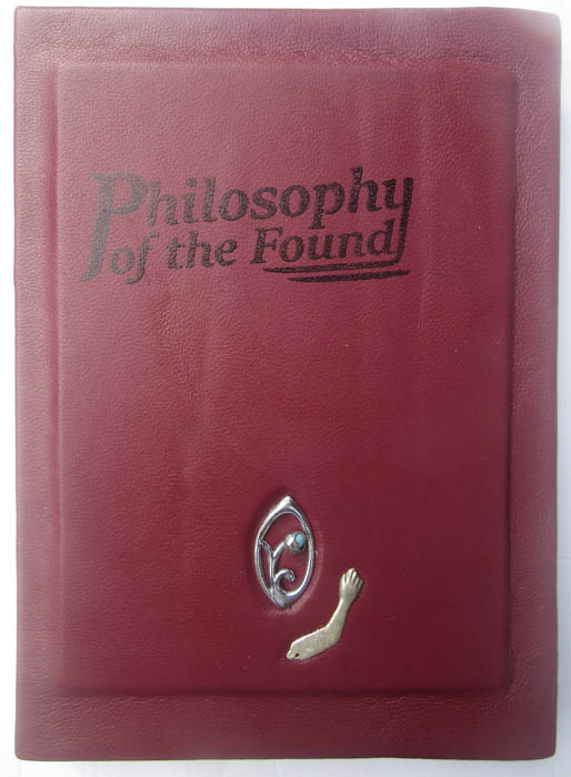handbound with maroon Italian leather, with silver brooch & cast silver hand - a milagro from Mexico.