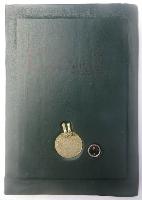 handbound with dark green Italian leather, with prize medal and an old typewriter's "?" key. Who can now tell what the medal was for?.