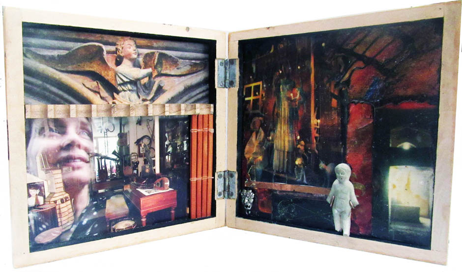 Assemblage of found objects in an old chisel box