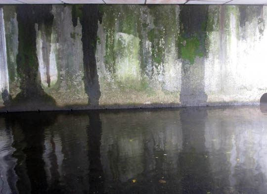 photograph of wall by river, underpass, Huatoki Plaza, New Plymouth