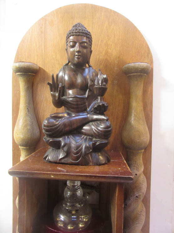 And the back cut from a sheet of lovely wood, with, of course, a Buddhist sacred figure