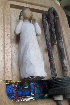 or, more cynically, 'Silent Night' with the attached explanation 'As an atheist, the attitude of the figurine suggests prayers to me. The jug heater looks blown to me. It won't work, Just like prayer. Silent Night.'