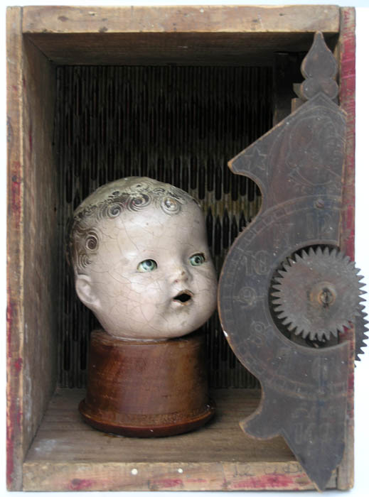 I'd been given that wonderful wooden-cogged clock and loved it, and also that beautifully battered old doll's head.