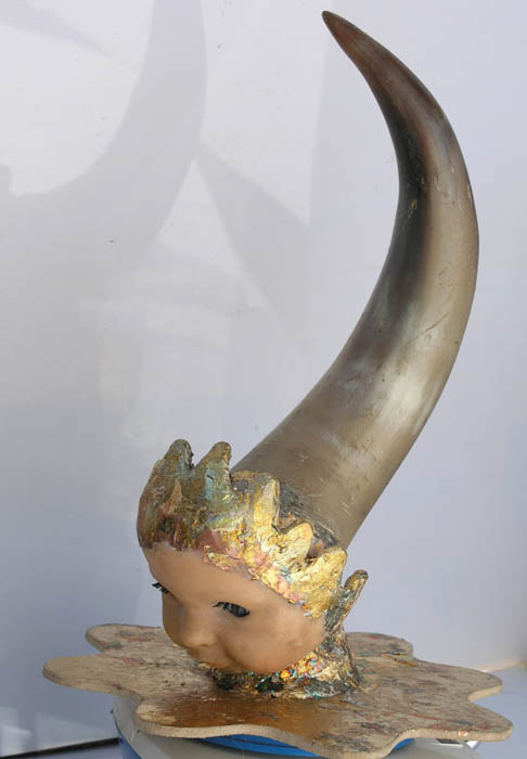And I'm (ever so slowly) working on a mechanical wind-up thing. Sort of "Garden of Earthly Delights". This figure not only goes around but the horn/tail part also rotates independently. (I found some wool winders at