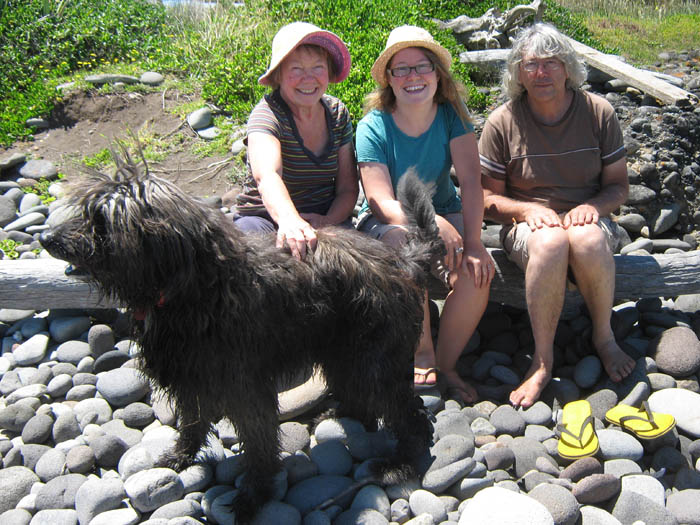 Christmas at this end of the world. Too hot to walk on the black sand at Komene, so a walk down Paora. Fergus, Dale, Toby and Paul (and some Photoshop