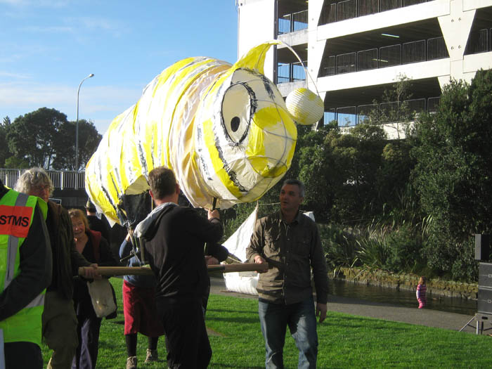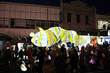 The Lantern parade for Taranaki's Arts Festival. The caterpillar, and the great team of 7 carriers, survived, in spite of all the enthusiastic head-waving,