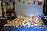 I needed a flat surface for making some large collages for taking to Paris, so cleared a desk completely off. It took two days!