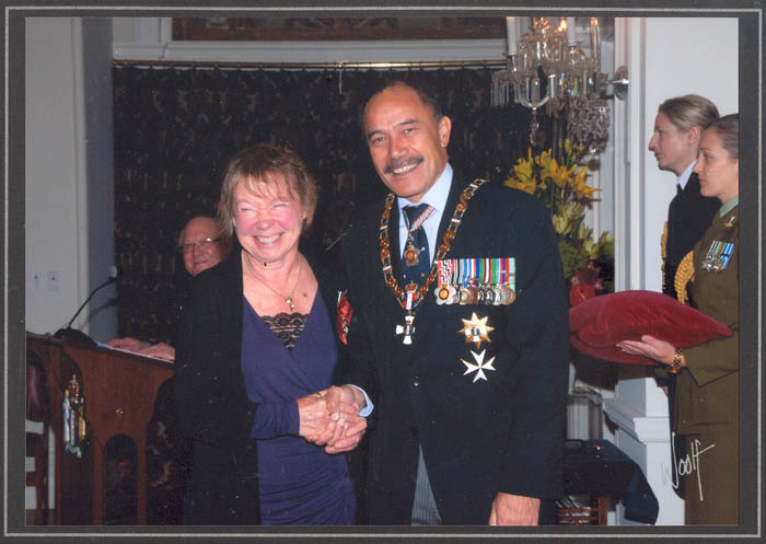With the Governor General Sir Jerry Matapaere. And with the musician Jordan Luck, who rushed in to help me be photographed. Isn't that lovely?