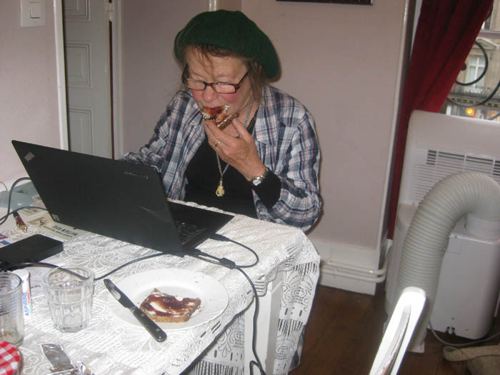 BUT WE'RE HERE! the artists, the artworks, 8 trolley, 2 shuttle buses, and we're here. Super apartment for the 10 of us. And Paris is (as always) terrific.