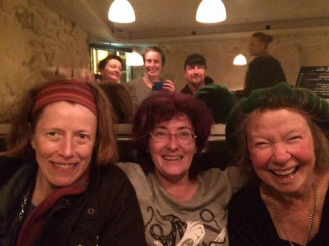 From the left: Anne Holliday and I start packing (in our berets, getting ready for a Paris winter).