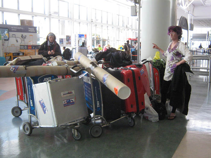 via Raglan and Port Waikato would you believe? But arrived, met the others, and with 8 trolleys full of luggage, all in the 'fragile or oversize' category,