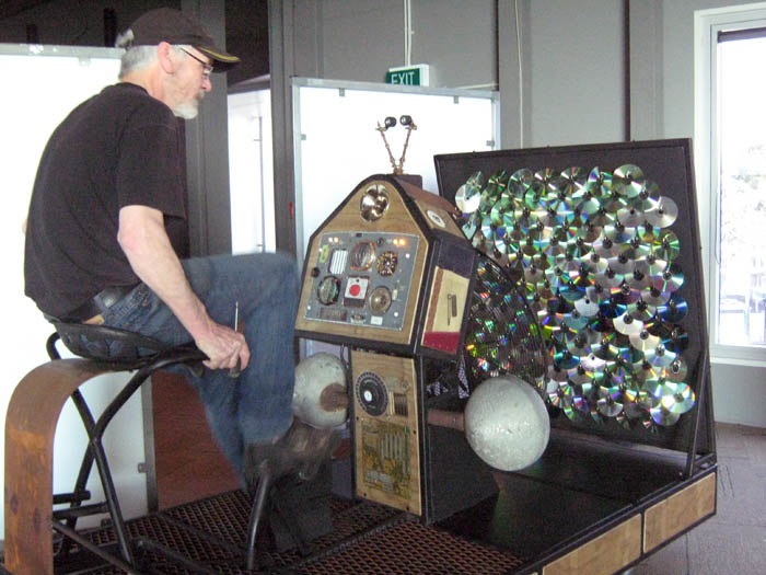My engineer friend Ken Gernhoefer, riding our Kinetika device The ReCycler, aka The Time Machine.