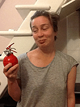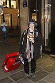 Anne (& Lessie) hauling stuff back to the apartment after the opening.