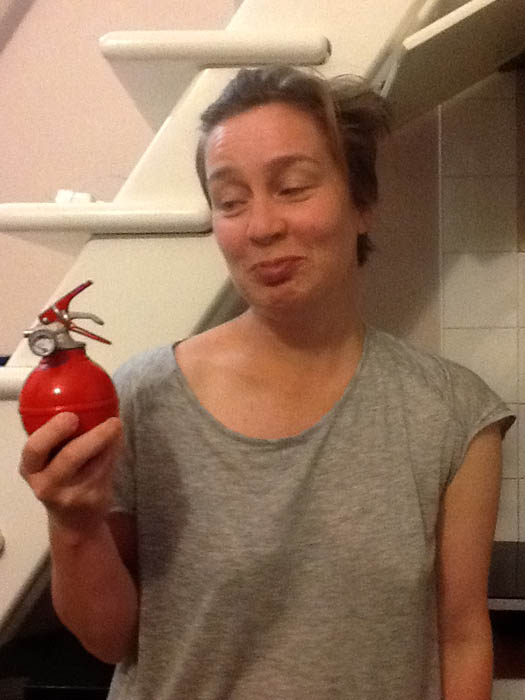 Five of us up early (WAY too early, the markets & patisseries aren't open yet). We've made coffee & porridge, catching up with email, and Linda found the sweetest little fire extinguisher.