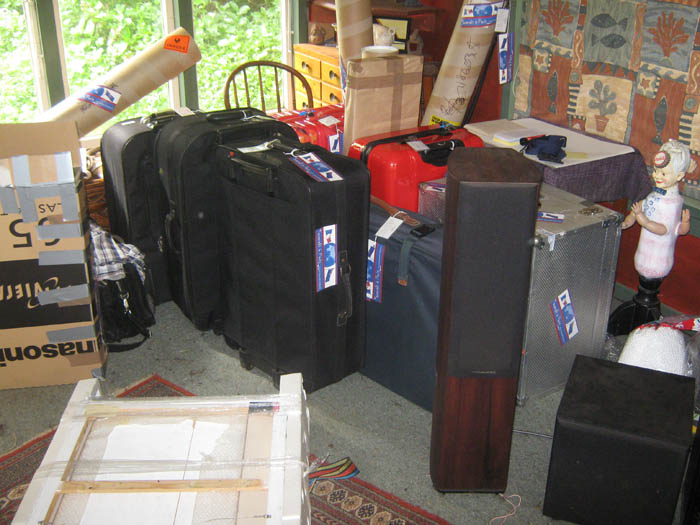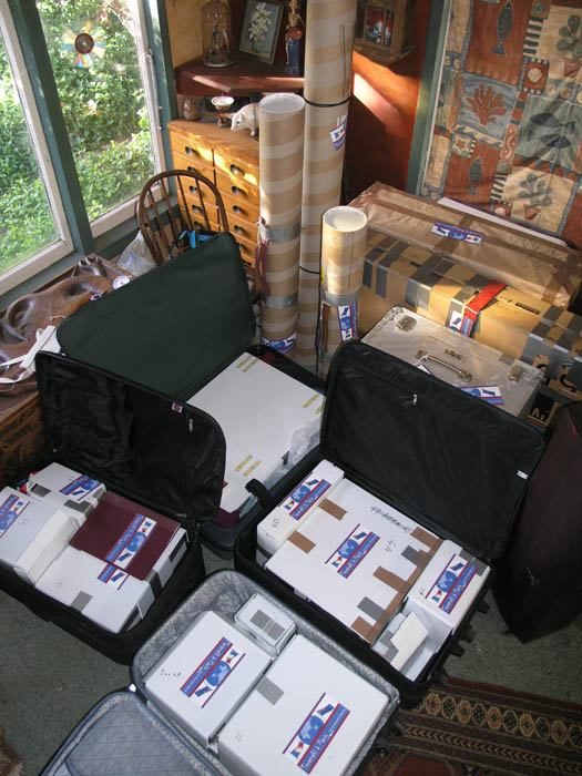 The house is full of packed bags and boxes and tubes. 235 artworks. It's going to be a real circus getting them safely to France.