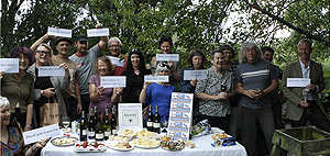 The terrific cheeses that Fonterra gave us. A few of the people downstairs at the opening (couldn't photograph around the table upstairs where they were LOVING the cheese - couldn't get close!)
